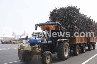 Photo Caption : A loaded tractor with sugarcane passing in front Suvarna Soudha, in Belgavi on Sunday 7th December 2025