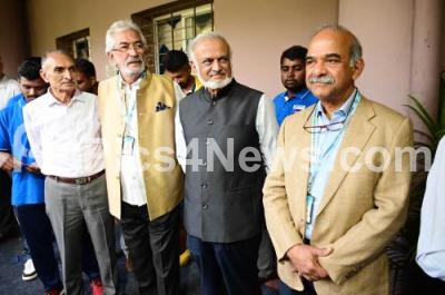Photo Caption : KSCA President Candidate Shanthakumar, Former Indian Cricketer Brijesh Patel and others during the KSCA elections at KSCA, in Bengaluru on Sunday 7th December 2025