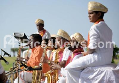 Photo Caption : Artists play Nadaswara on the first of Assembly and council sessions at Suvarna Soudha, in Belagavi on Monday 8th December 2025