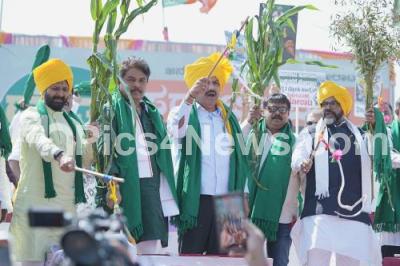 BJP leaders R Ashoka, Vijayendra, CT Ravi, Chalavadi Narayanswamy and Farmer leaders staging a protest at Suvarna Soudha, demanding supporting price to Maize crops , in Belagavi on Tuesday 9th December 2025