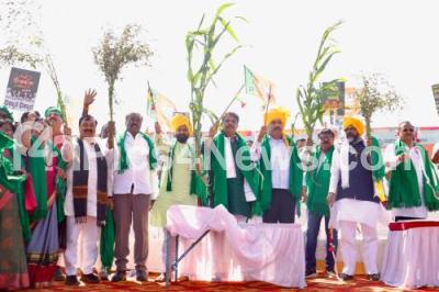 Photo Caption : BJP leaders R Ashoka, Vijayendra, CT Ravi, Chalavadi Narayanswamy and Farmer leaders staging a protest at Suvarna Soudha, demanding supporting price to Maize crops , in Belagavi on Tuesday 9th December 2025