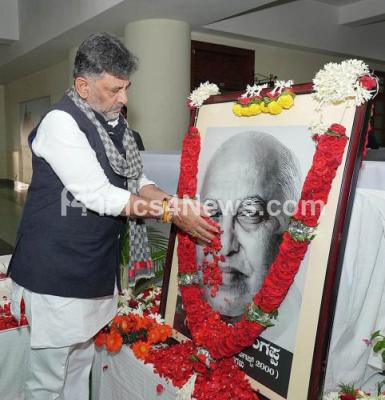 Photo Caption : DCM DK Shivakumar offering floral tribute to S. Nijalingappa, Former Chief Minister of Karnataka portrait on his birth anniversary at Suvarna Soudha, in Belagavi on Wednesday 10th December 2025