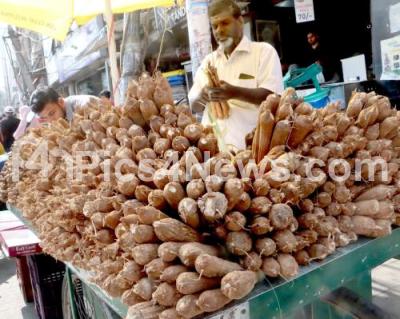 Event Description : People shopping Palmyra sprouts (Panang Kilangu) at Shivajinagar, in Bengaluru on Sunday 21st December 2025