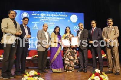 Photo Caption : Dr. Manjula, IAS, Secretary to Government Dept. of Electronics, IT,BT and S and T with UM Reddy, President FKCCI exchanging MoU files during the Tech-Talk Districts to Digital Power House and FKCCI-KDEM MoU Signing program at FKCCI, also seen are Sanjeev Gupta, CEO, KDEM, T Sairam, Vice President, FKCCI and others, in Bengaluru on Wednesday 24th December 2025