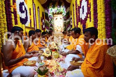 Photo Caption : Priests offered Laksharchana seva to show their unique gesture of devotion by chanting one lakh names of the Lord in front of Sri Srinivasa Govinda at ISKCON temple, on the occasion of Vykunta Ekadashi festival, in Bengaluru on Tuesday 30th December 2025