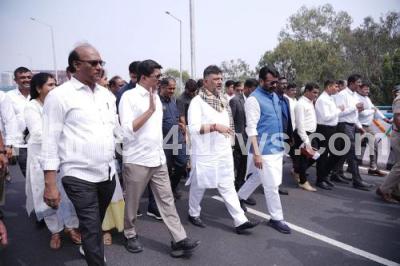 Photo Caption : DCM DK Shivakumar inaugurated the flyover constructed by the Bangalore Development Authority (BDA) in Hebbal, which will facilitate smooth traffic from Tumkur and Bangalore North towards Mekhri Circle, also seen are Minister Byrathi Suresh, BDA Chairman, MLA N A Harris, Commissioner Manivannan, DCM Secretary Rajendra Cholan and others, in Bengaluru on Thursday 1st January 2026