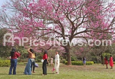 Event Description : Pink tabebuia flowers in full bloom and attract the visitors at Cubbon Park, in Bangalore on Friday 2nd January 2026