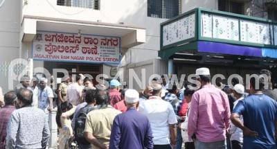 Photo Caption : Crowd gathered in front of JJ Nagar Police Station after the violence at JJ Nagar, in Bengaluru on Monday 5th January 2026