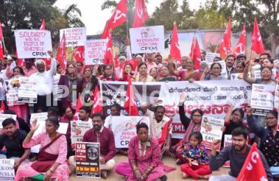 Members of CPI (M) staged a protest against the US attack on Venezuela, the protest was held at Freedom Park, in Bengaluru on Thursday 8th January 2026