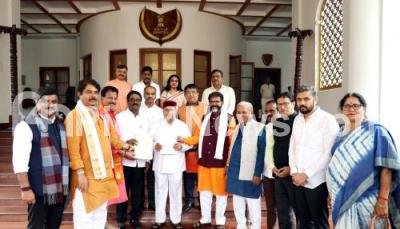 Photo Caption : BJP delegation led by MLA SR Vishwanath and Opposition Party Leader R Ashoka met Governor Thawarchand Gehlot and submitting a memorandum at Lok Bhavan , in Bengaluru on Monday 12th January 2026
