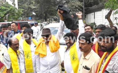 Photo Caption : Members of Vatal Chaluvali Paksha led by its President Vatal Nagaraj being detained by Police near Lok Bhavan, during their protest and demanding implementation of Mahajan report , in Bengaluru on Monday 12th January 2026