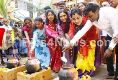 Photo Caption : Actresses Tara Anuradha, Anu Prabhakar celebrated Sankranti festival and distributed free Sesame, Jaggery to the BBMP workers at Cox town, in Bengaluru on Wednesday 14th January 2026