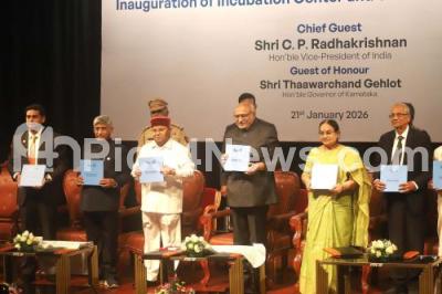 Photo Caption : Vice President of India CP Radhakrishnan with Governor of Karnataka Thaawarchand Gehlot, Dr. Sabitha Ramamurthy, President, CMR Jnanadhara Trust, Dr. KC Ramamurthy, Former Rajya Sabha Member and others during the Silver Jubilee Celebrations and Inauguration of Incubation Centre and the Auditorium at CMR Institute of Technology, in Bengaluru on Wednesday 21st January 2026