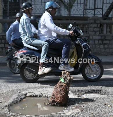 Photo Caption : Pothole menace at Church Street, causing inconvenience to people and motorists, in Bengaluru on Friday 23rd January 2026