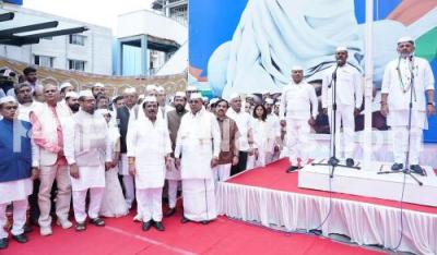 Photo Caption : KPCC President and DCM DK Shivakumar and Congress leaders during the 77th Republic Day celebrations at KPCC office, in Bengaluru on Monday 26th January 2026