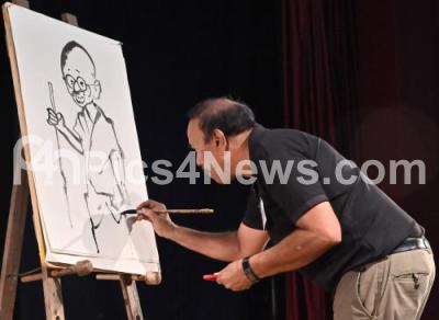 Photo Caption : Senior Artist BG Gujjarppa drawing Mahatma Gandhi portrait during the Sarvodaya Day program at Kondajji Basappa Auditorium, in Bengaluru on Friday 30th January 2026