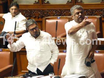 Photo Caption : Congress MLCs BK Hariprasad and Naseer Ahmed during the Council Session at Vidhana Soudha, in Bengaluru on Wednesday 4th February 2026