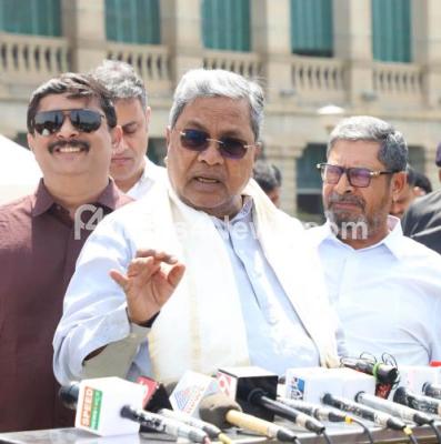 Photo Caption : Chief Minister of Karnaaka Siddaramaiah addressing media after garlanding the statue of Former CM Kengal Hanumantaiaha on his birth anniversary program at Vidhana Soudha, in Bengaluru on Tuesday 10th February 2026
