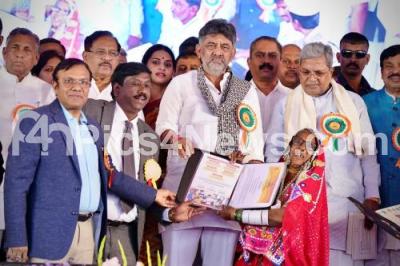 Chief Minister of Karnataka Siddaramaiah with DK Shivakumar, Home Minister Dr. G Parameshwara, Ministers Krishna Byre Gowda, Shivananda Patil, HK Patil, Satish Jarakiholi, KH Muniyppa and others during the Congress Sadhana Samavesha Convention, on the Completion of 1000 days of Congress Government, in Haveri on Saturday 14th February 2026