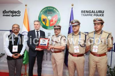 Dick Schoof, Prime Minister of the Netherlands was welcomed by Karnataka Director General and Inspector General of Police MA Saleem, Bengaluru City Police Commissioner Seemant Kumar Singh, and Joint Commissioner of Police (Traffic) Karthik Reddy during his visit to the Bengaluru Traffic Management Centre, in Bengaluru on Friday 20th February 2026