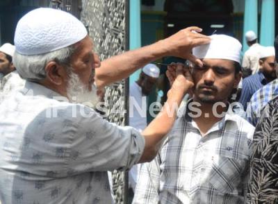 Photo Caption : Muslims applying Surma (Cosmetic Kohl) on the first Friday of Holy Month of Ramadan at Jamia Masjid, near KR Market, in Bengaluru on Friday 20th February 2026