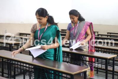Photo Caption : Teachers and staff writing exam registration numbers in classrooms at Seshadripuram College in preparation for 2nd PUC exams which begins from tomorrow, in Bengaluru on Friday 27th February 2026