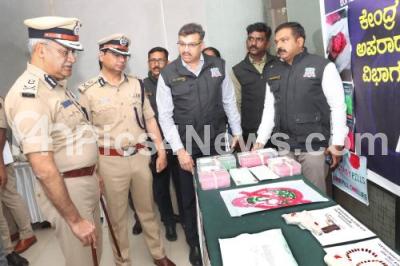 Police Commissioner Seemanth Kumar Singh inspecting seized items during the press on Property Parade at Police Commissioner office, in Bengaluru on Friday 27th February 2026