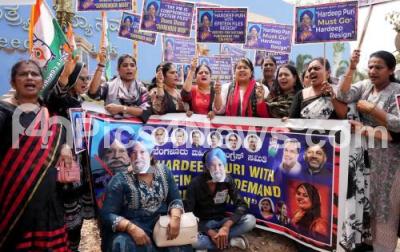 Photo Caption : Mahila Congress staged a protest against the Union Minister Hardeep Singh Puri in the Epstein Row at Freedom Park, in Bengaluru on Friday 27th February 2026