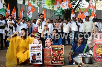 Photo Caption : Members of KPCC Youth Congress led by President Manjunath protesting against Union Government for hike in price for LPG Cylinder, in Bengaluru on Tuesday 10th March 2026