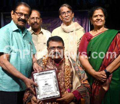 Photo Caption : Poet BR Lakshman Rao with Poet Damodar Shetty and YK Muddukrishna, renowned Kannada playback singer and folk artist presenting the Gowri Sundar Award 2026 to Mruthyunjay Doddawad at Indian Institute of World Culture, in Bengaluru on Sunday 15th March 2026