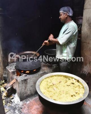 Photo Caption : Cooks at a private hotel at Vyalikaval, preparing food using firewood due to shortage of LGP Cylinder supply, in Bengaluru on Sunday 15th March 2026