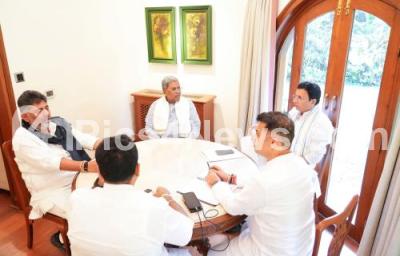 Photo Caption : Chief Minister of Karnataka Siddaramaiah with Randeep Surjewala, Karnataka Congress In Charger, DCM DK Shivakumar and others during the meeting on Karnataka by elections, in Bengaluru on Friday 20th March 2026