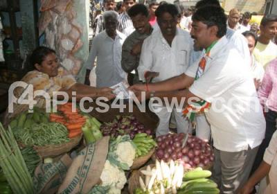Photo Caption : Congress candidate RS Sathya Narayana from Dattatreya Ward seeking votes from shop vendor during door to door campaigning for the BBMP Elections at Malleshwaram, in Bangalore on Saturday 20th March 2010