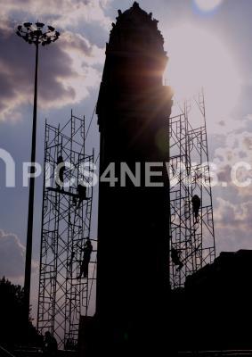 Workers seen doing some repair work on Kempegowda Tower at Corporation Circle, in Bangalore on Tuesday 4th May 2010
