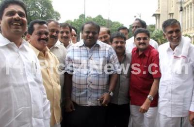 Photo Caption : Former CM and JDS State President HD Kumraswamy with other JDS MLAs seen coming to Vidhana Soudha for Assembly and Council Session, in Bangalore on Thursday 15th July 2010
