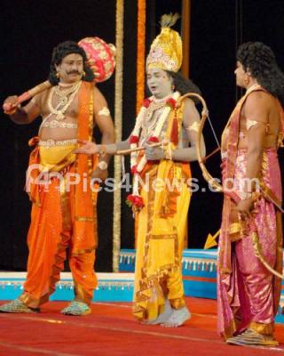 Artists performing Krishna Sandhana drama during the State Level Rangotsava 2010 organised by Rangashri Kala Samsthe and Kannada and Culture Dept at Ravindra Kalakshetra, in Bangalore on Thursday 15th July 2010