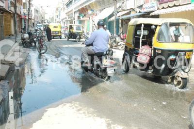 Overflowing drain water making it difficult for people to pass through the Jain Temple Road, Shivajinagar, in Bangalore on Wednesday 12th Feb 2008.