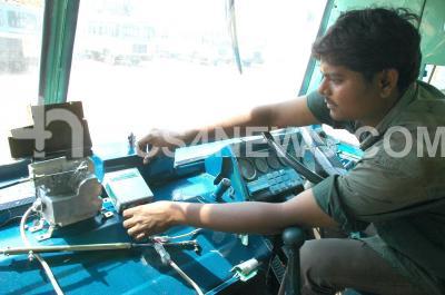 Photo Caption : Speed Governors being fitted in BMTC buses for which the Karnataka High Court has given a dead line of June 30th 2008, in Bangalore on Wednesday 13th Feb 2008.
