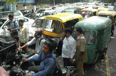 Traffic jam at Raj Bhavan road during the MLA Vattal Nagaraj’s protest, in Bangalore on Thursday 4th Oct 2007 Pics: www.pics4news.com