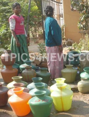 Scarcity of water supply leaves the residences stranded near Banashankari, in Bangalore on Wednesday 20th Feb 2008.