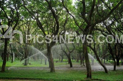 Sprinkles watering the trees at Cubbon Park, in Bangalore on Thursday 9th 2010