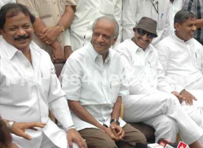 Photo Caption : Former Karnataka Deputy Chief Minister MP Prakash who died at a private hospital in Bangalore today after a prolonged battle with cancer, seen in a file photo with MLA Roshan Baig, Vatal Nagar and others, in Bangalore on Wednesday 9th Feb 2011