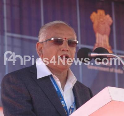 Photo Caption : CM BS Yediyurappa addressing during the inauguration of Aero India 2011, Asia’s premier air show at Yelahanka Airforce Station, in Bangalore on Wednesday 9th Feb 2011