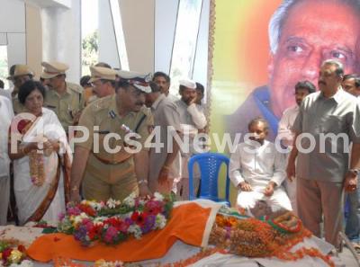 Photo Caption : Police Commissioner Shankar Bidari paying his last respects to Former Deputy CM MP Prakash who passed away today in Bangalore, body was kept for public viewing at Freedom Park, in Bangalore on Wednesday 9th Feb 2011