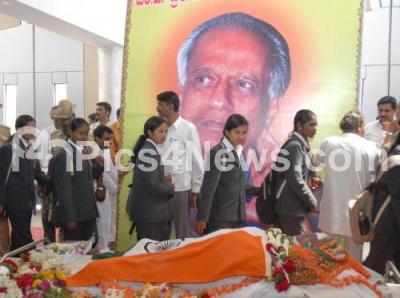 Photo Caption : Students paying his last respects to Former Deputy CM MP Prakash who passed away today in Bangalore, body was kept for public viewing at Freedom Park, in Bangalore on Wednesday 9th Feb 2011