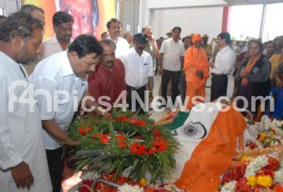 Photo Caption : Mayor SK Nataraj paying his last respects to Former Deputy CM MP Prakash who passed away today in Bangalore, body was kept for public viewing at Freedom Park, in Bangalore on Wednesday 9th Feb 2011