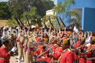 Photo Caption : State honour being given by Police to Former Deputy CM MP Prakash who passed away today in Bangalore at Freedom Park, in Bangalore on Wednesday 9th Feb 2011