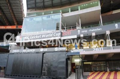 Preparations are underway at Chinnaswamy Stadium for upcoming Cricket World Cup 2011, in Bangalore on Tuesday 8th Feb 2011