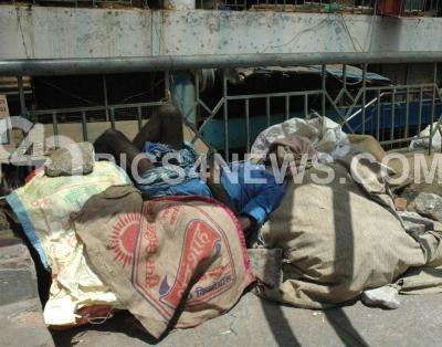 A labourer seen taking a nap during May Day (Labour Day) at City Market, in Bangalore on Sunday 1st May 2011