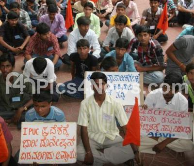 ABVP members and students protesting against the donations for first year PUC students admissions in colleges, the protest was held in front of PUC board in Malleswaram, in Bangalore on Monday 2nd May 2011